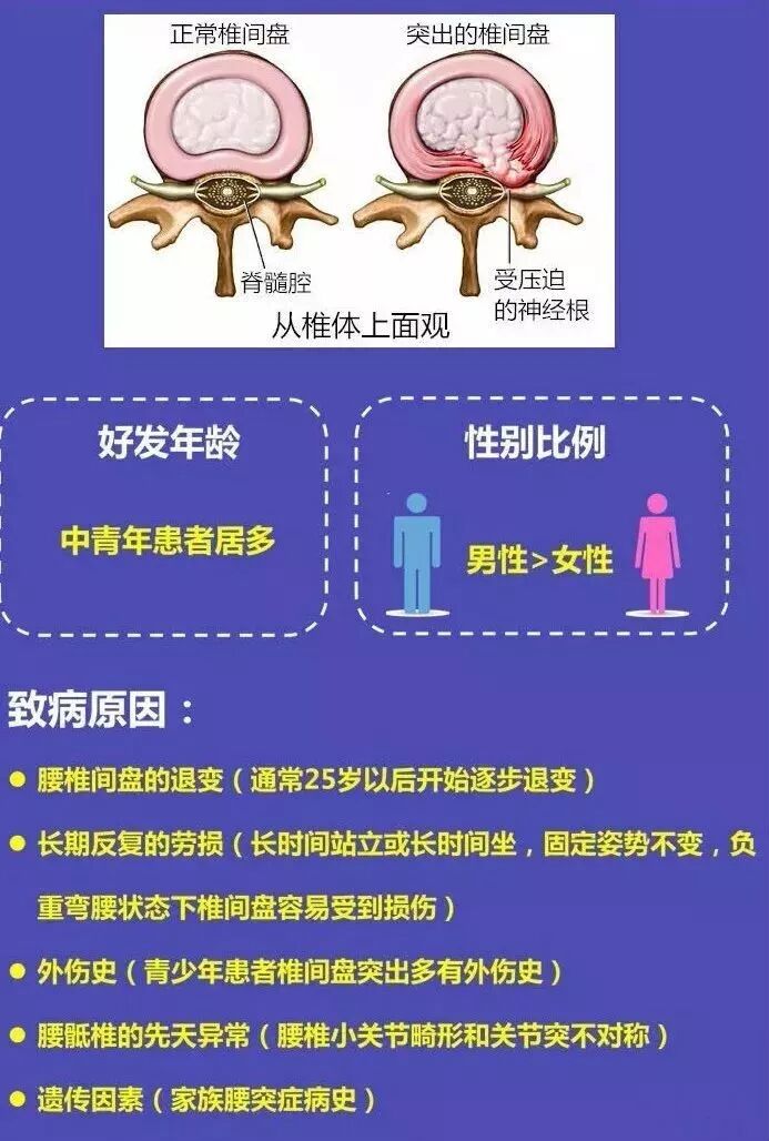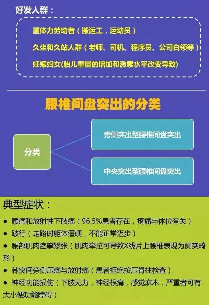 很多人都有过腰痛的经历,严重的时候甚至出现下肢疼痛。如果长时间疼痛,就要注意是否为腰椎间盘突出症了,如果认真读懂下面这张图,你对腰椎间盘突出症就能了解的清楚了。